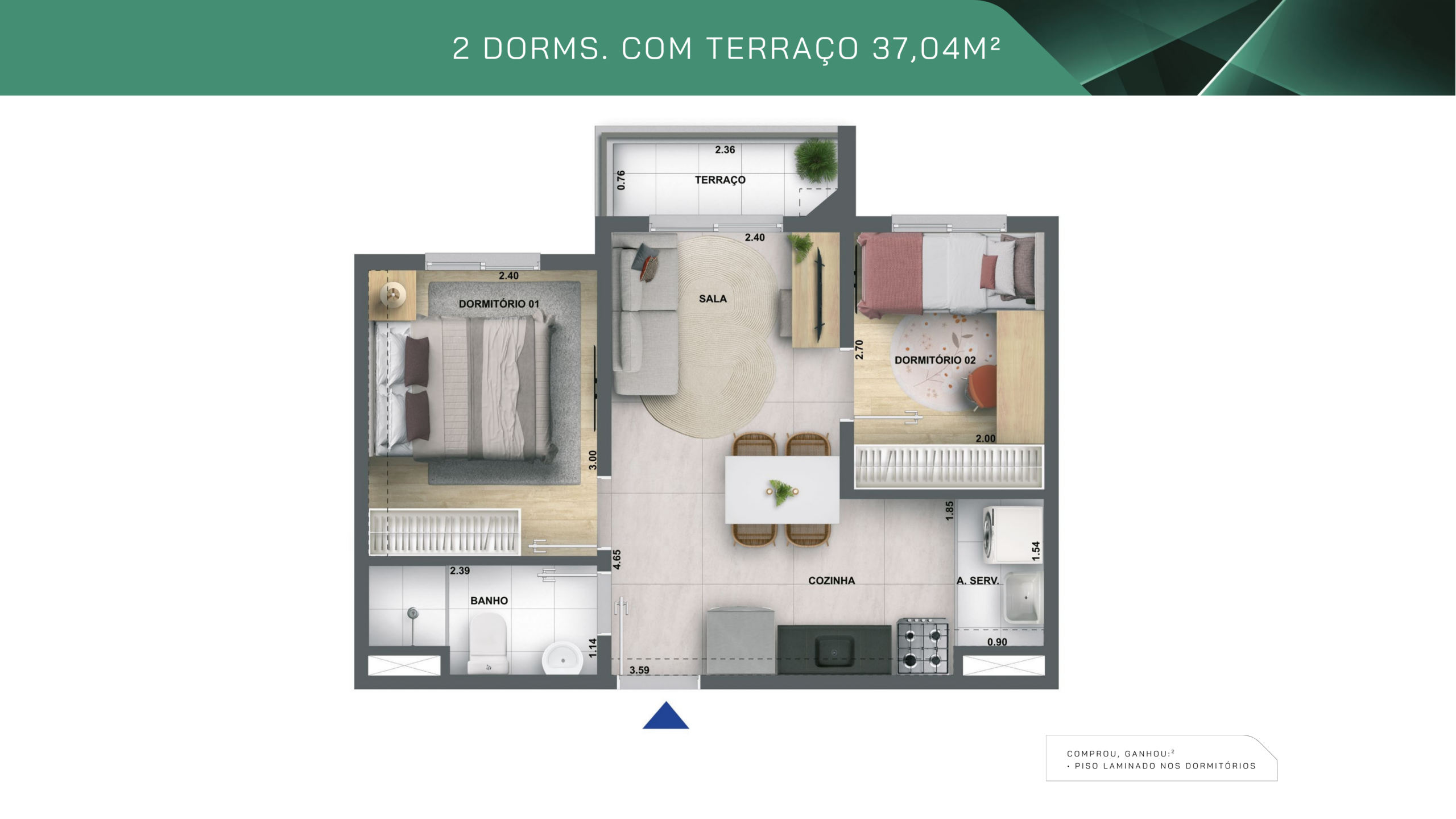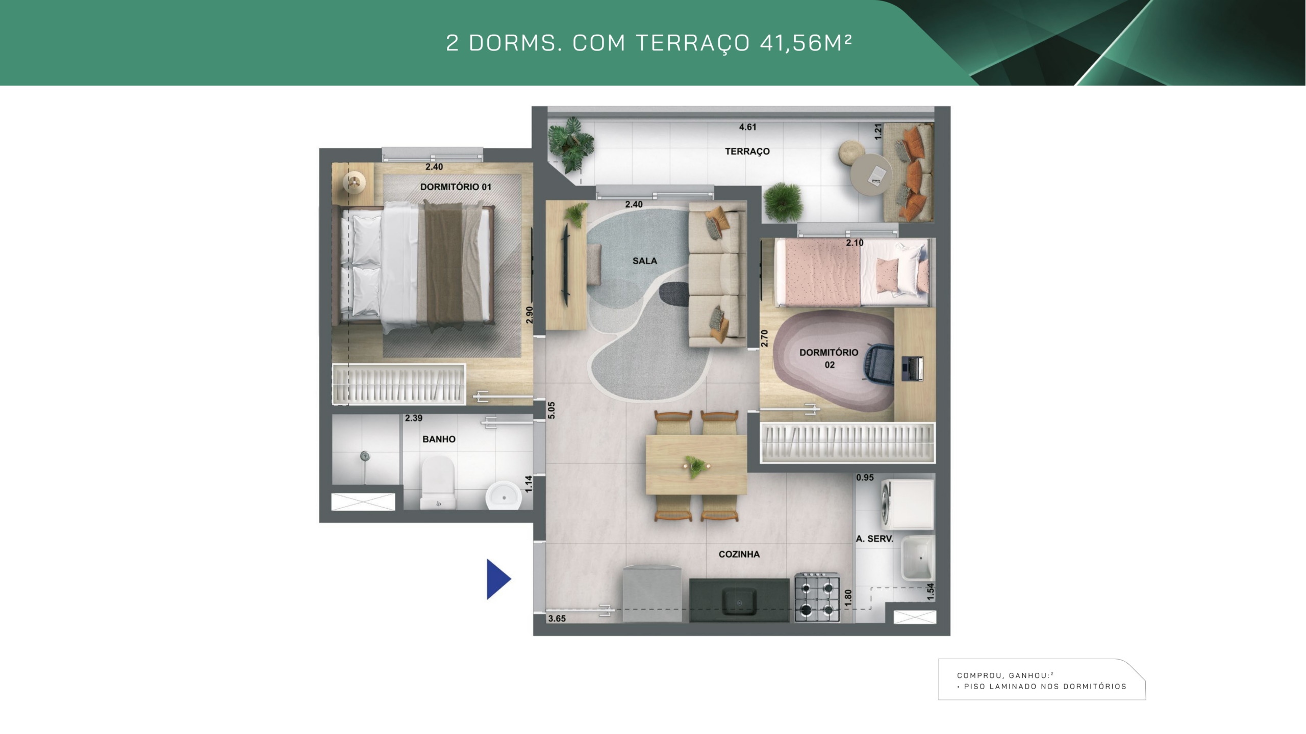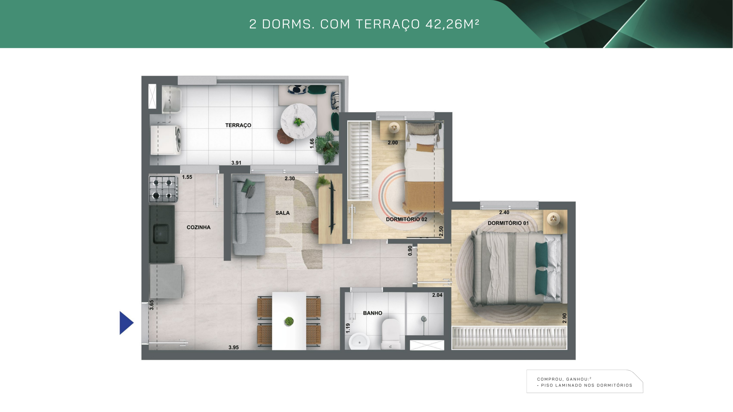 2 DORMS. COM OPÇÃO DE TERRAÇO | LAZER COMPLETO