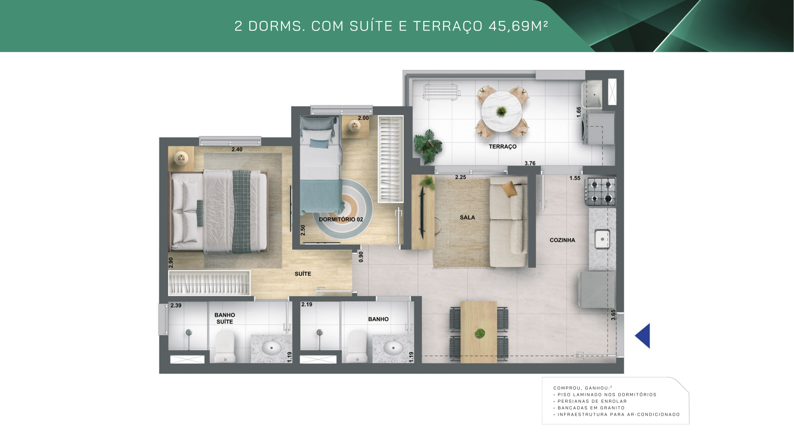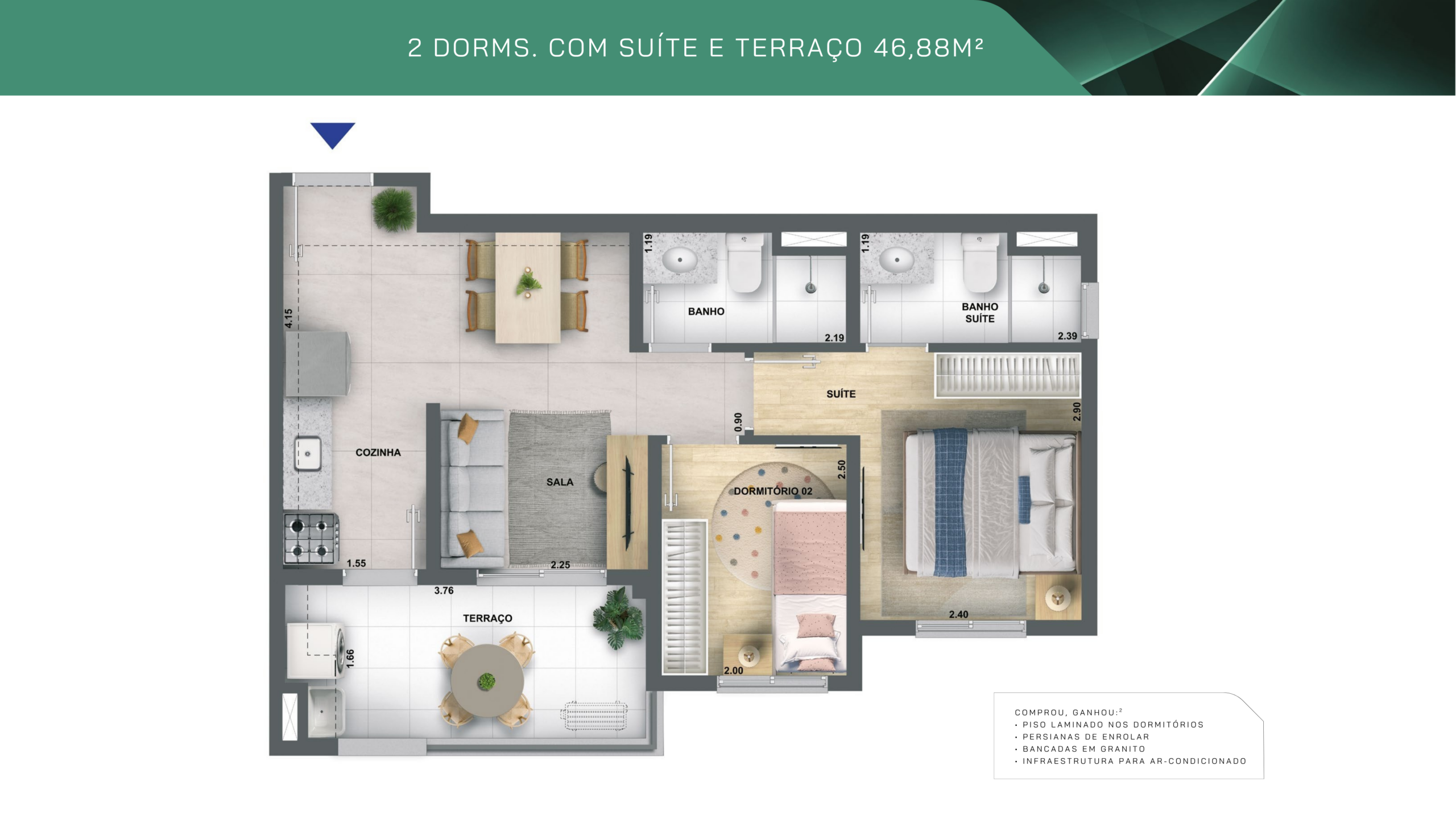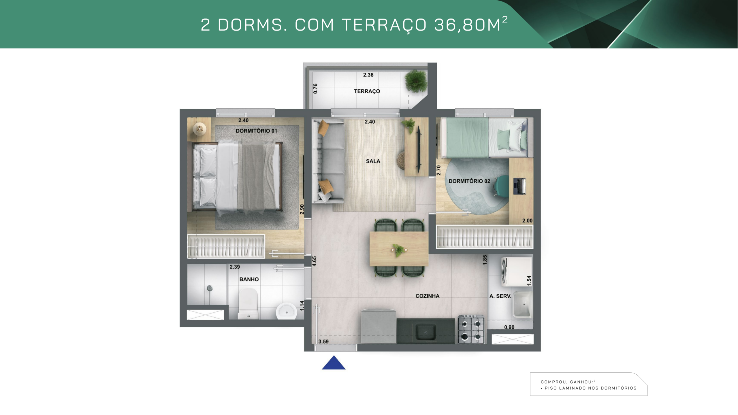 2 DORMS. COM OPÇÃO DE TERRAÇO | LAZER COMPLETO